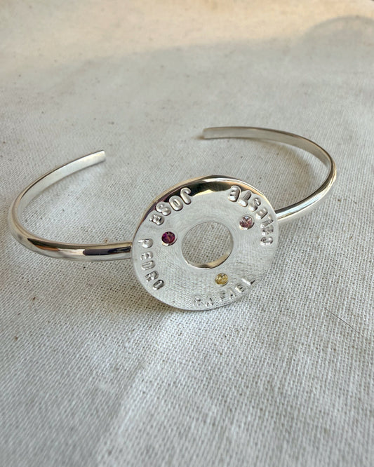 Medalla De Plata Con Colgante Personalizable y Circón - Leonor