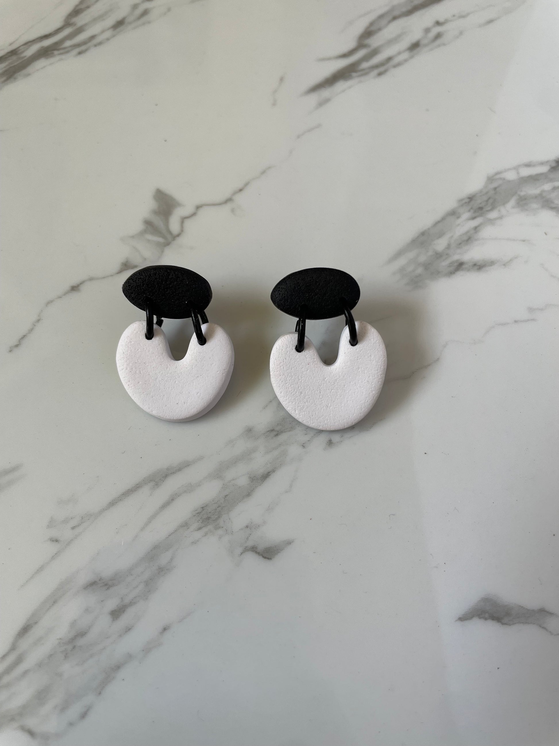 Aritos Hechos a Mano con Diseño de Arco Invertido en Blanco y Negro