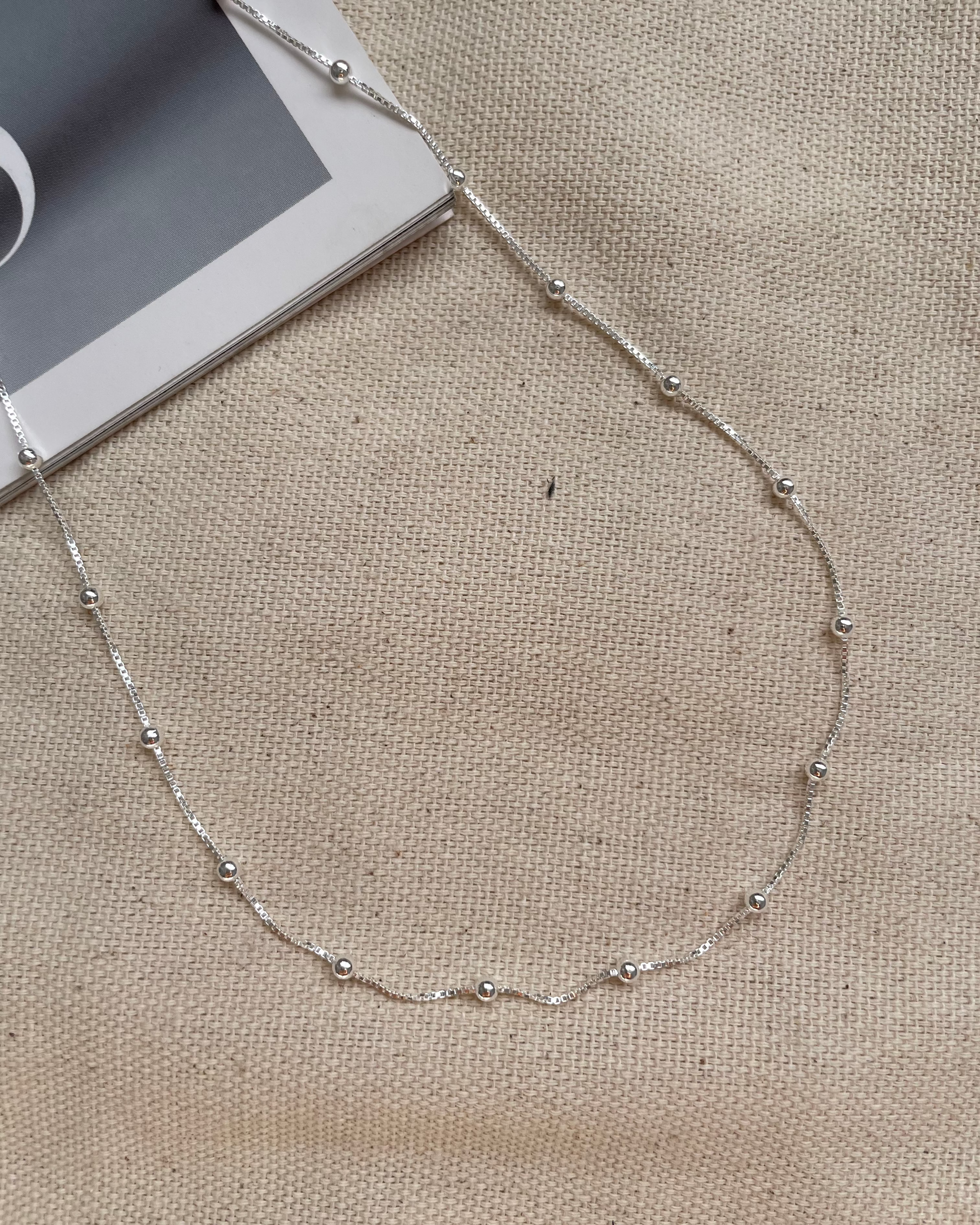 Hermosa cadena corta veneciana con bolitas. Ideal para usar con otros collares o también solo y darle un toque de sofisticación a tu look.