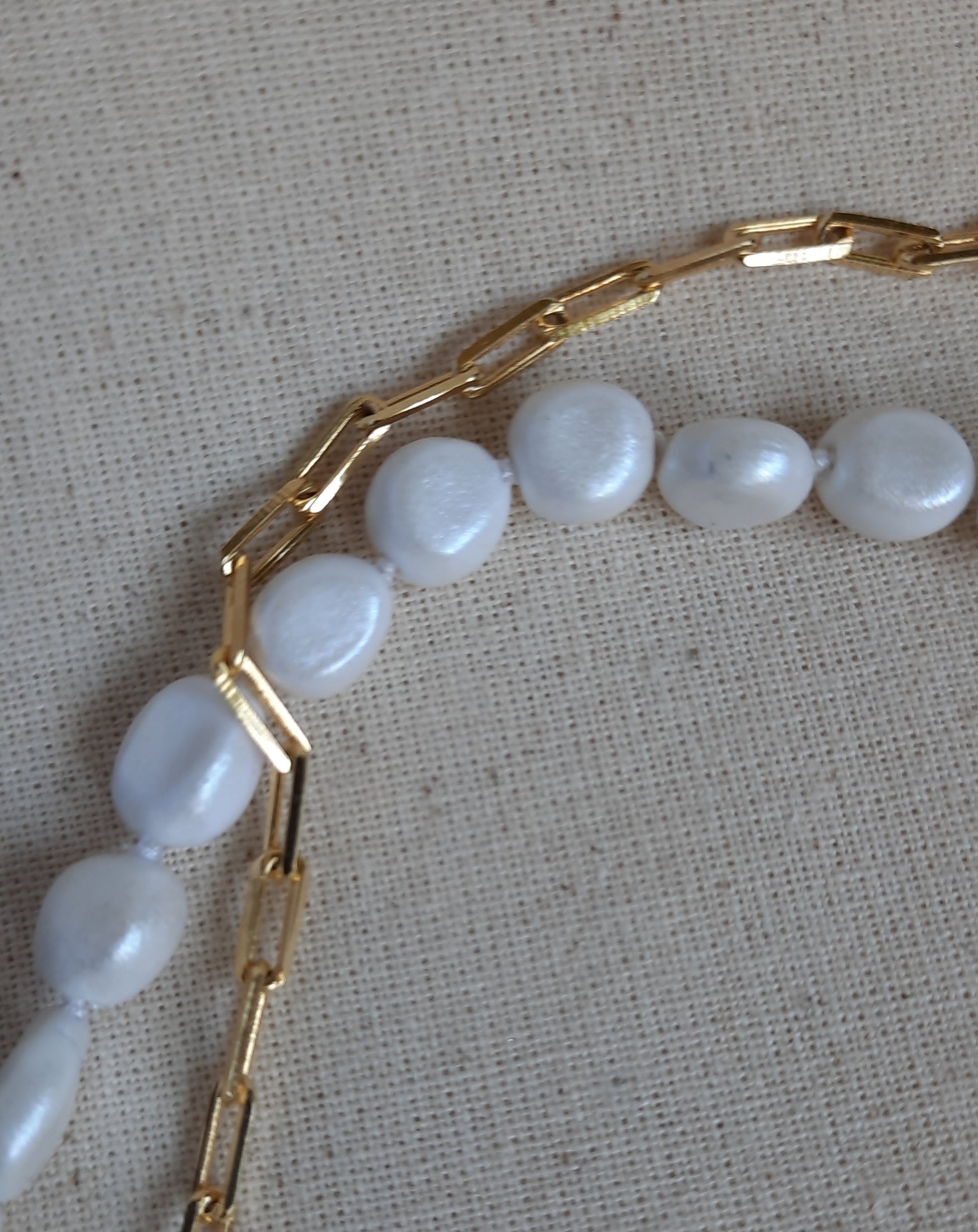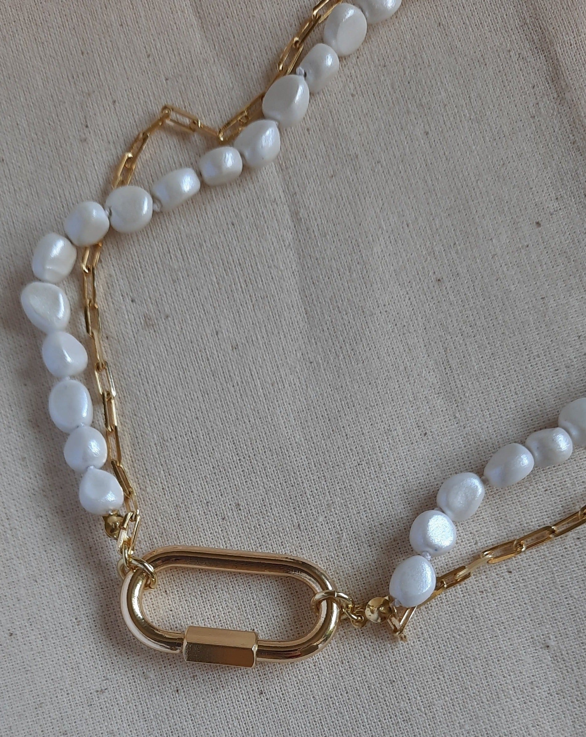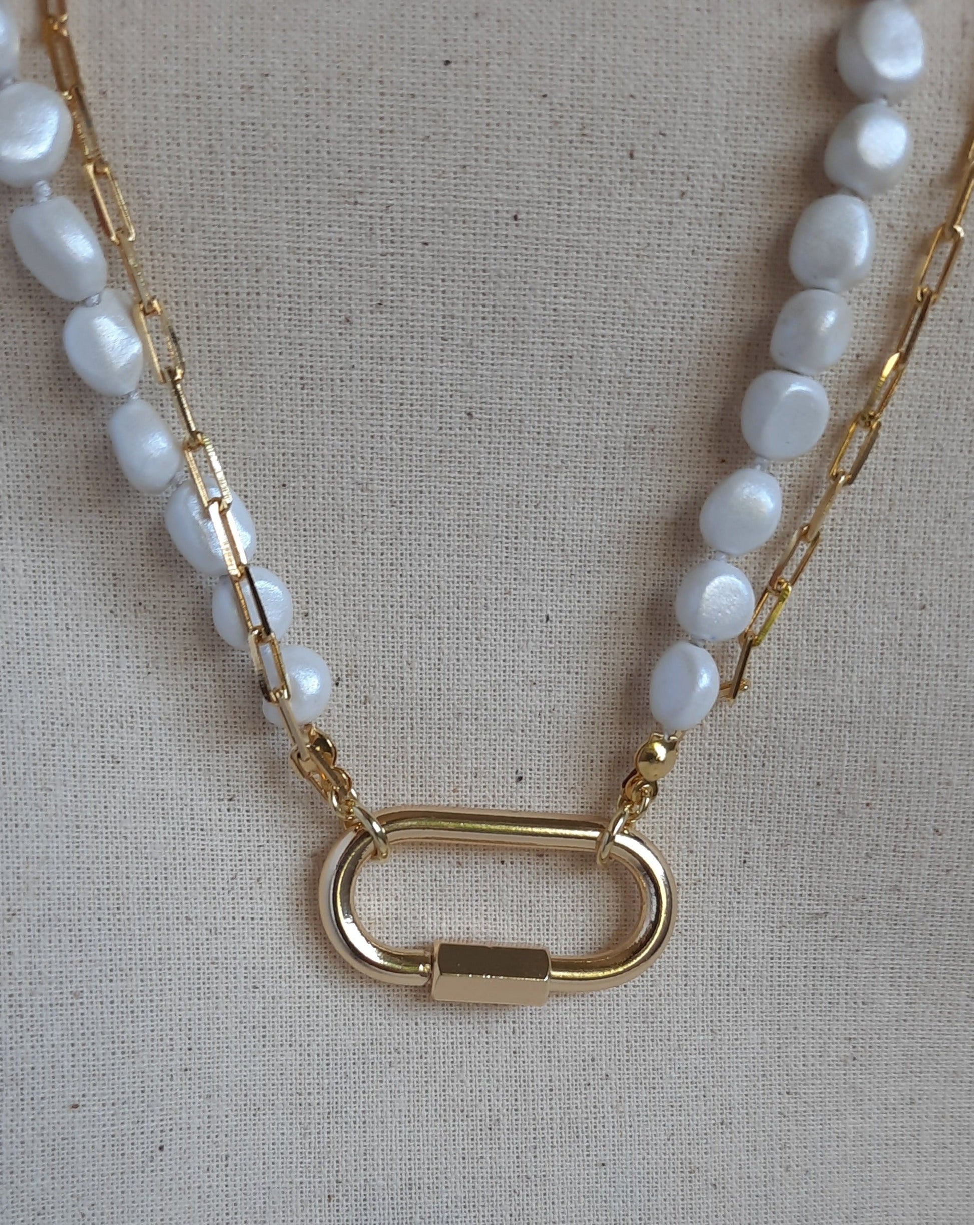 Doble Cadena: Este collar presenta dos cadenas, una de No-perlas que aporta su encanto único, y otra de tipo Cartier que agrega un toque moderno y elegante.