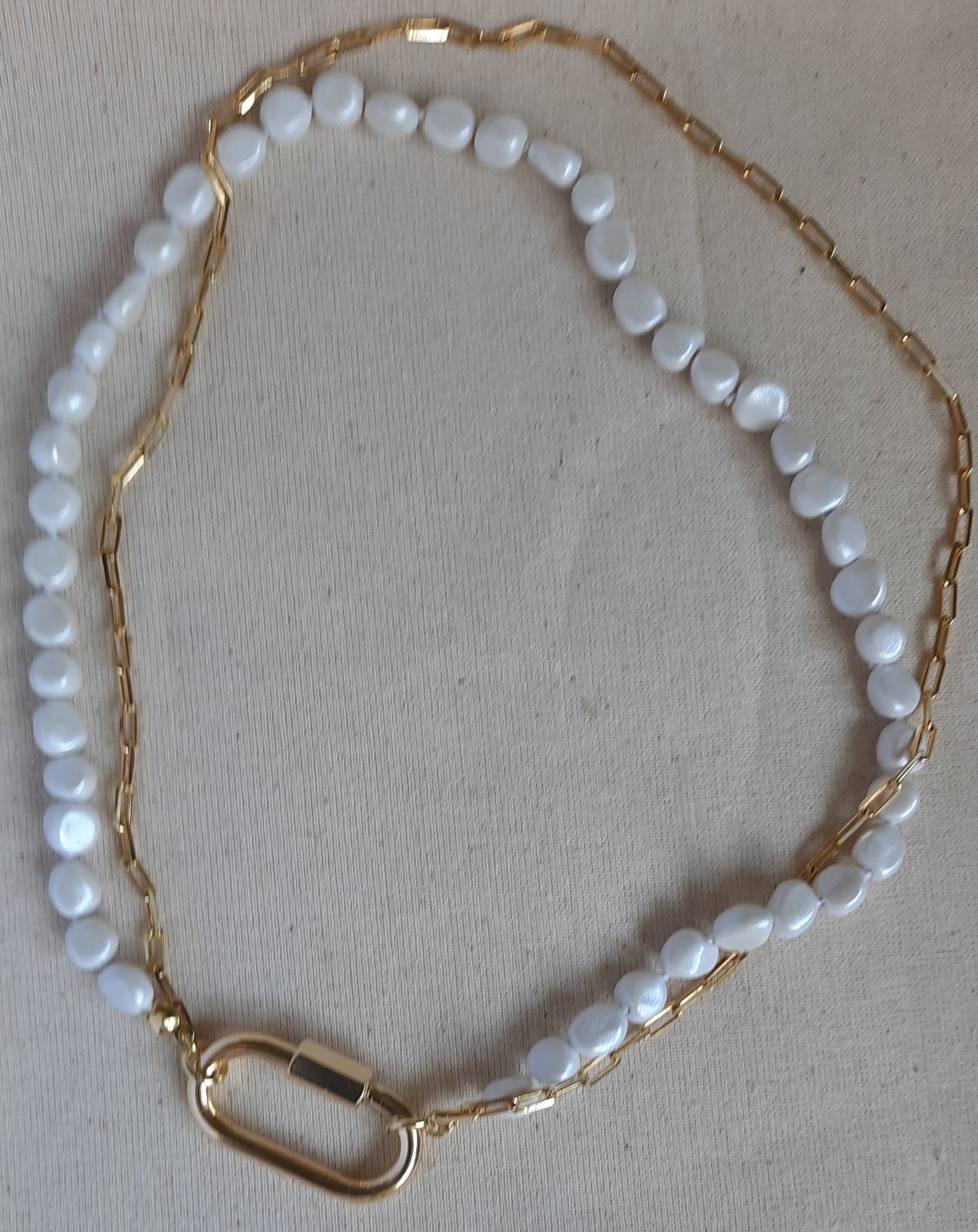 Broche Mosquetón en Oro: El broche de tipo mosquetón, bañado en oro, no solo asegura la seguridad, sino que también agrega un toque de lujo a esta joya.