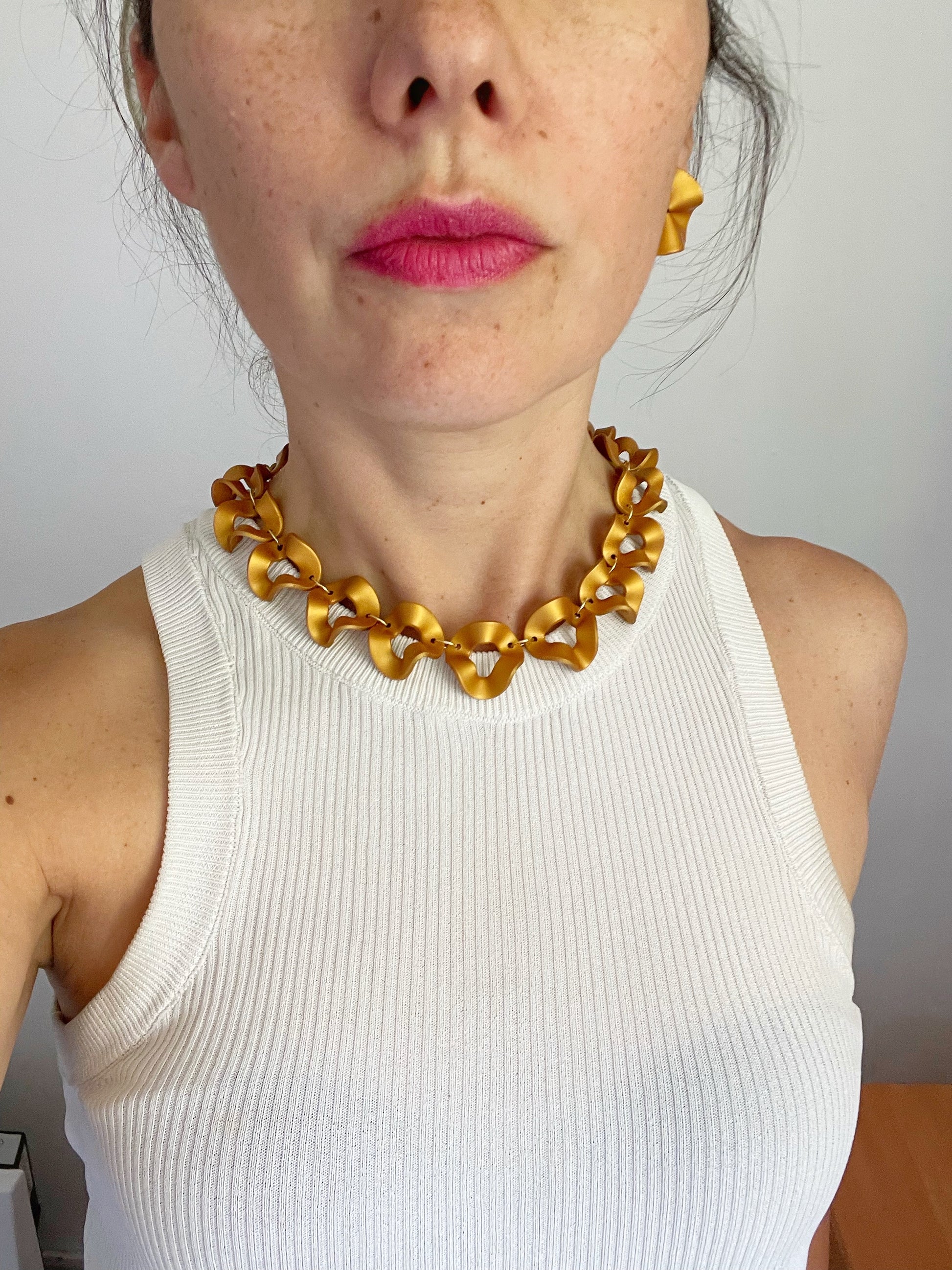 - Este collar robara las miradas, su color dorado y su brillo resaltara tu belleza.