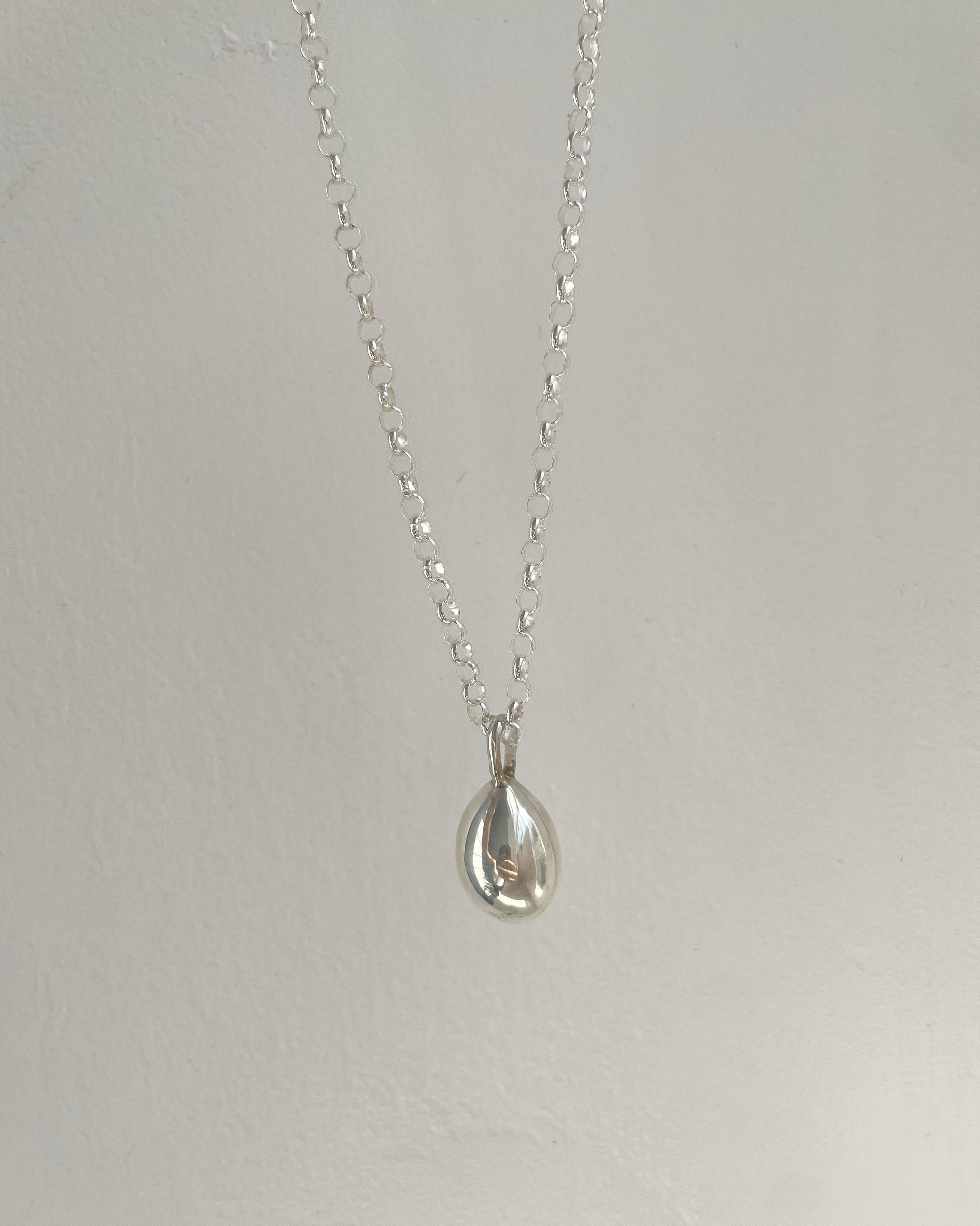Un diseño simple, pero con presencia. Este collar, elaborado completamente en plata 950, combina la clásica cadena rolo con un colgante en forma de gota grande, creando una pieza sofisticada y versátil que puedes usar todos los días o en ocasiones especiales.